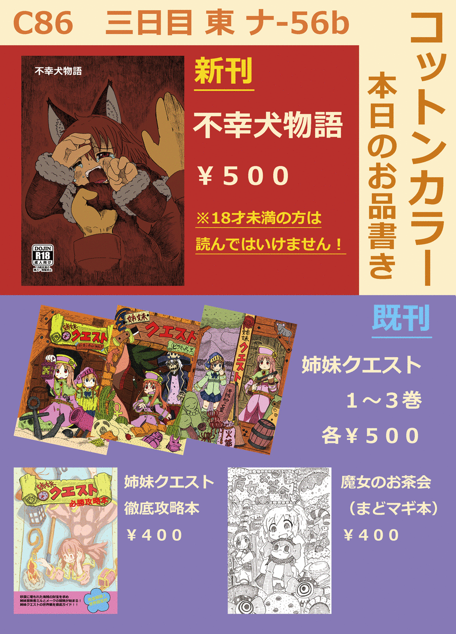 新刊以外にも既刊の「姉妹クエスト」も配布しますので