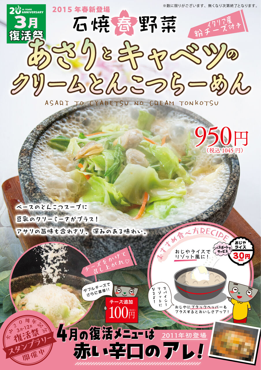 2024年05月01日 【5月の復活メニューはすっぱ辛いこちら!】 石焼らーめん火山です本日5/1(水)より、“ 復活祭 ”第3弾の商品が噴火いたします5月の復活商品はこちら↓↓↓↓↓2015年秋に初登場した『石焼野菜 酸辣湯麺』ですお酢と麻辣油のすっぱ辛い独特な味わいが女性に特に人気ふわふわ卵が味も見た目も引き立てます復活祭販売商品は数量限定にて販売いたします。ぜひこの機会に足をお運びいただき、一緒に復活祭を盛り上げて下さいスタンプラリーも開催中目指せ10商品コンプリート皆さまのご来店を心よりお待ちしております 「イベント」カテゴリの最新記事 < 前の記事次の記事 > コメント コメントフォーム 名前 コメント 評価する リセット リセット 顔 星 投稿する 情報を記憶