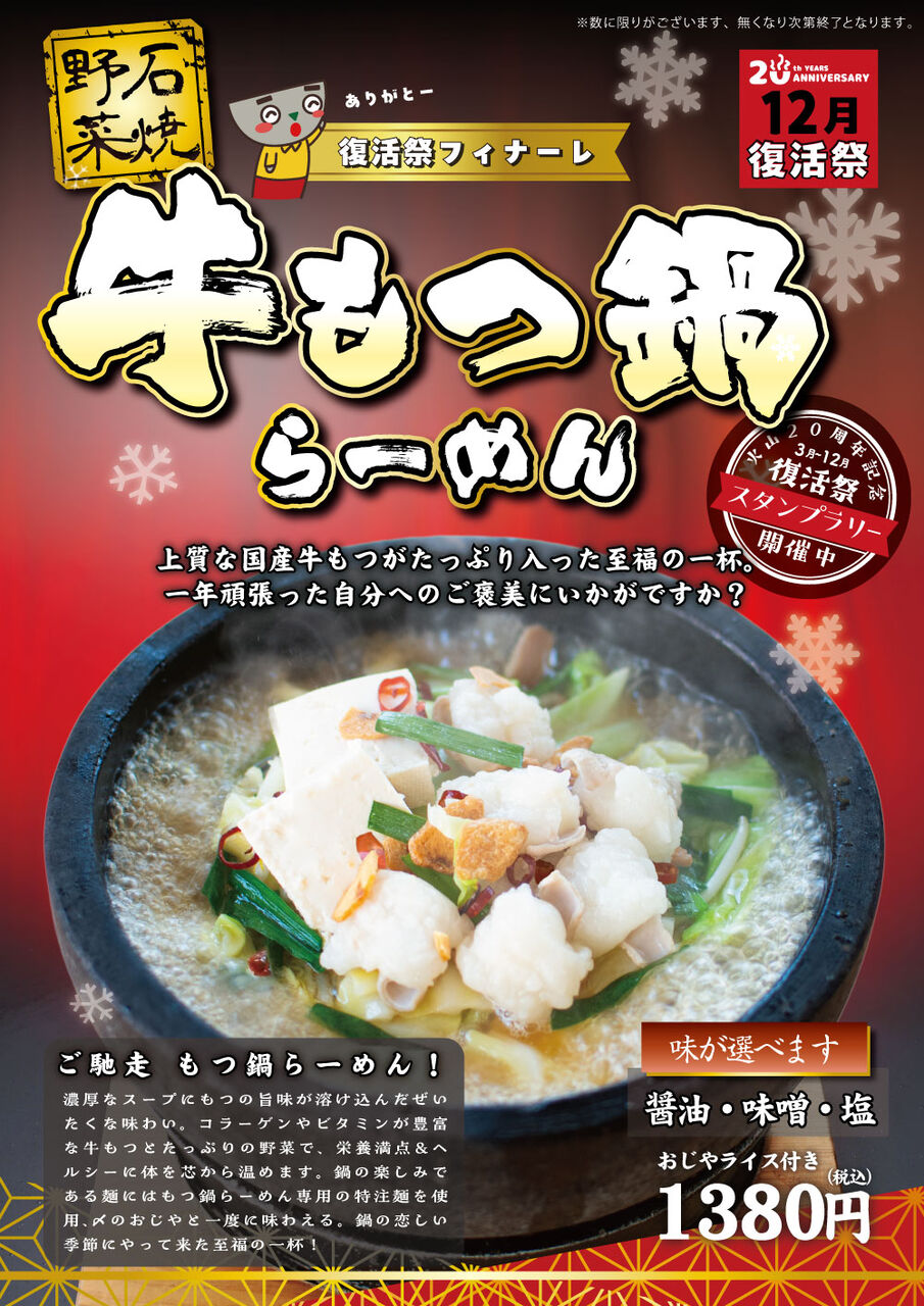 『石焼野菜 牛もつ鍋らーめん』が噴火