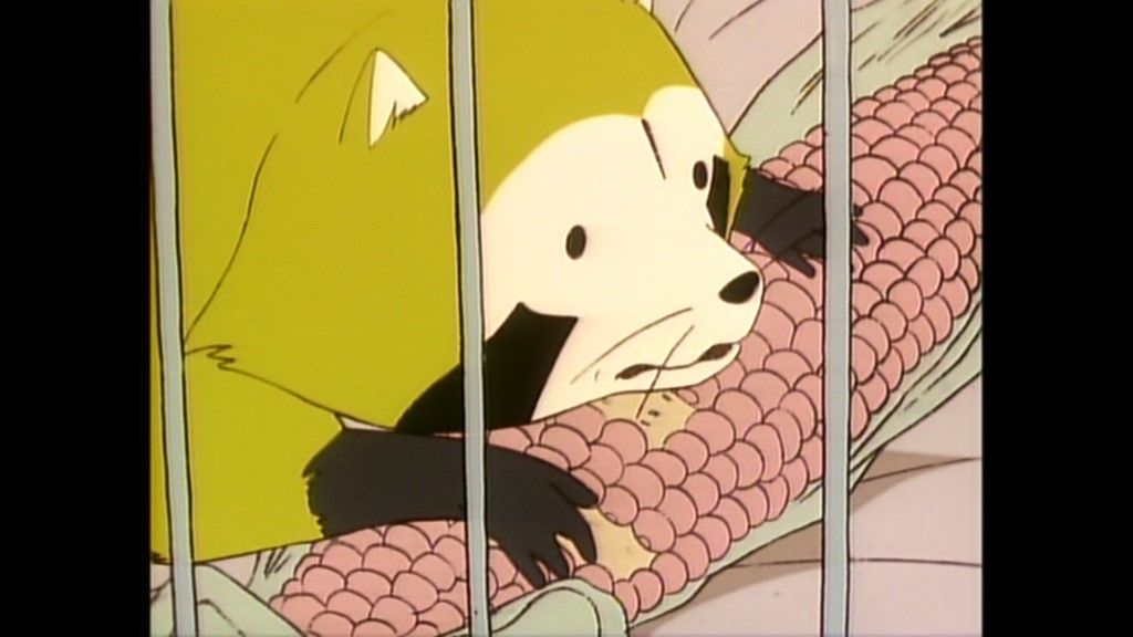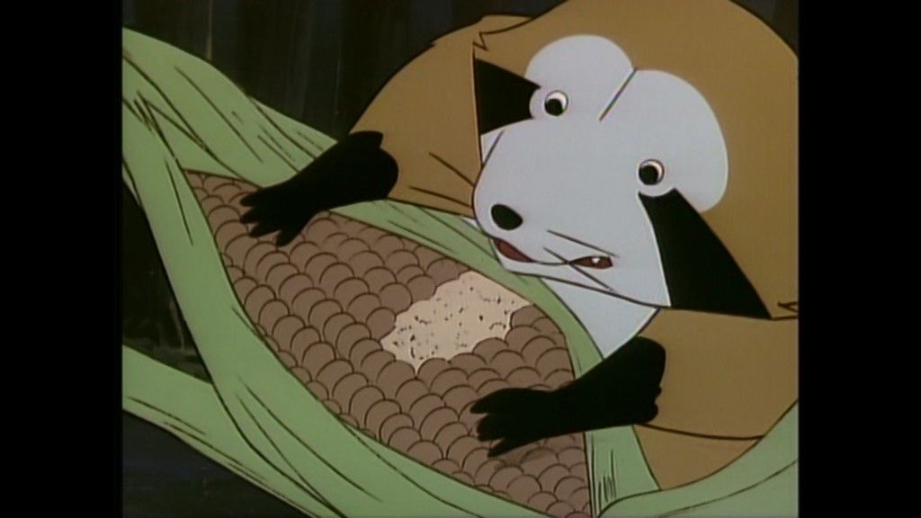 ラスカルがギャーと獣の声をあげながら、トウモロコシを