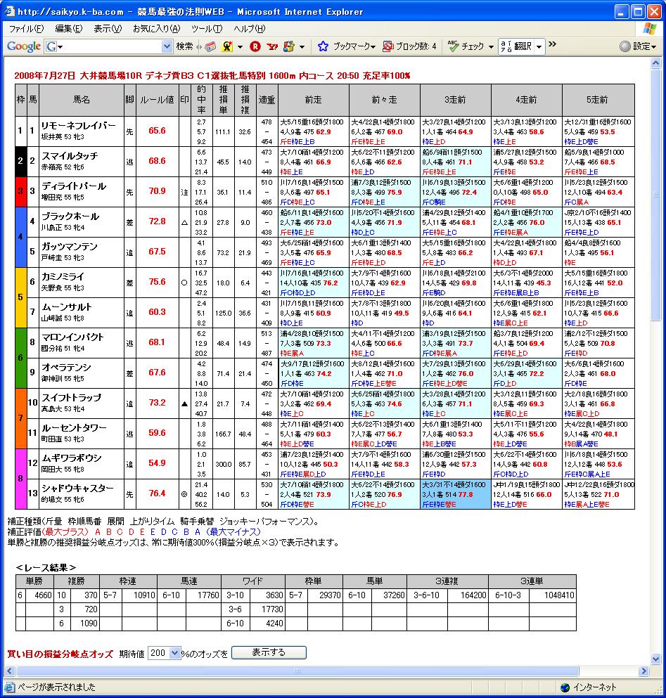 21時30頃、大井競馬の成績をチェックしていきながら驚きました。