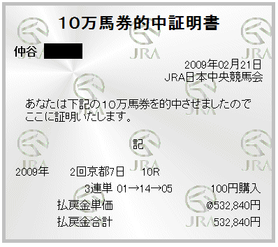 ¤Á¤Ê¤ß¤Ë¤³¤Î¥ì¡¼¥¹¤Ç»ä¤¬Çã¤Ã¤¿·ô¼ï¤Ï£³Ï¢Ã±¤Ç¤·¤¿¡£