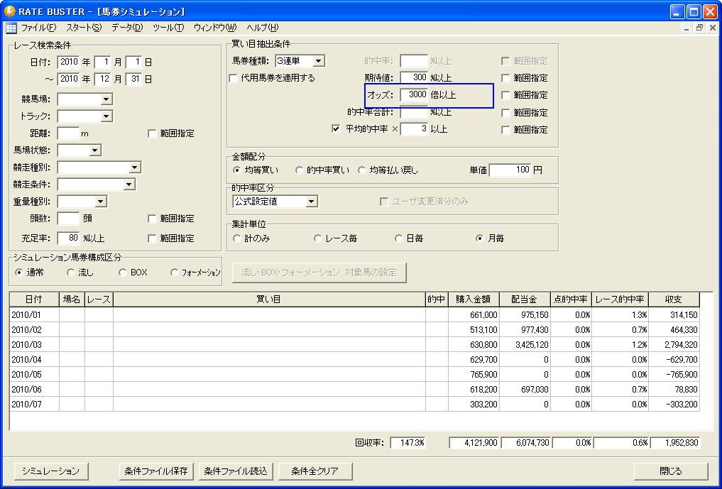 少ない資金で運用する為にはパンクするリスクを覚悟で一発勝負するか、レース的中率を高めるしかありません。ユーザの中にはたまたまビックウェーブにあたって巨万の富を築かれた方もいらっしゃいますが、まずはレース的中率を高めるテクニックが重要だと思います。