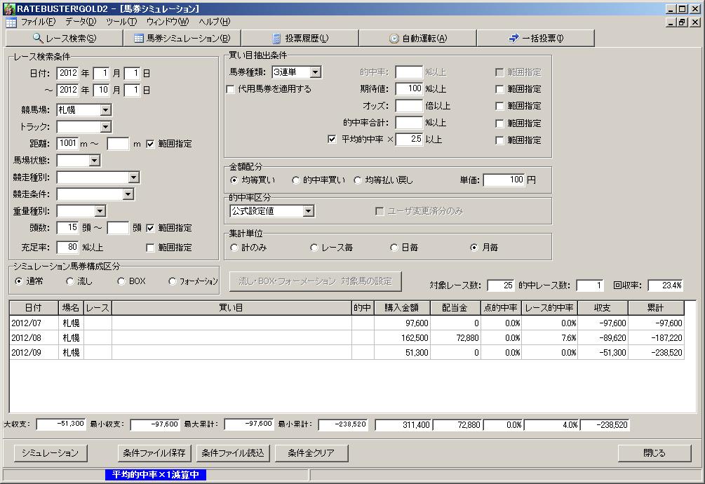 試作用のRATEBUSTER!GOLD3(仮名)は現在有料会員の方を中心に順次配布する予定です。又追加したい機能や理論なども随時受け付けています。先週は富士Sの1、2着馬が3歳馬であったので3歳馬ルール値を見直すようにとご意見を頂きました。