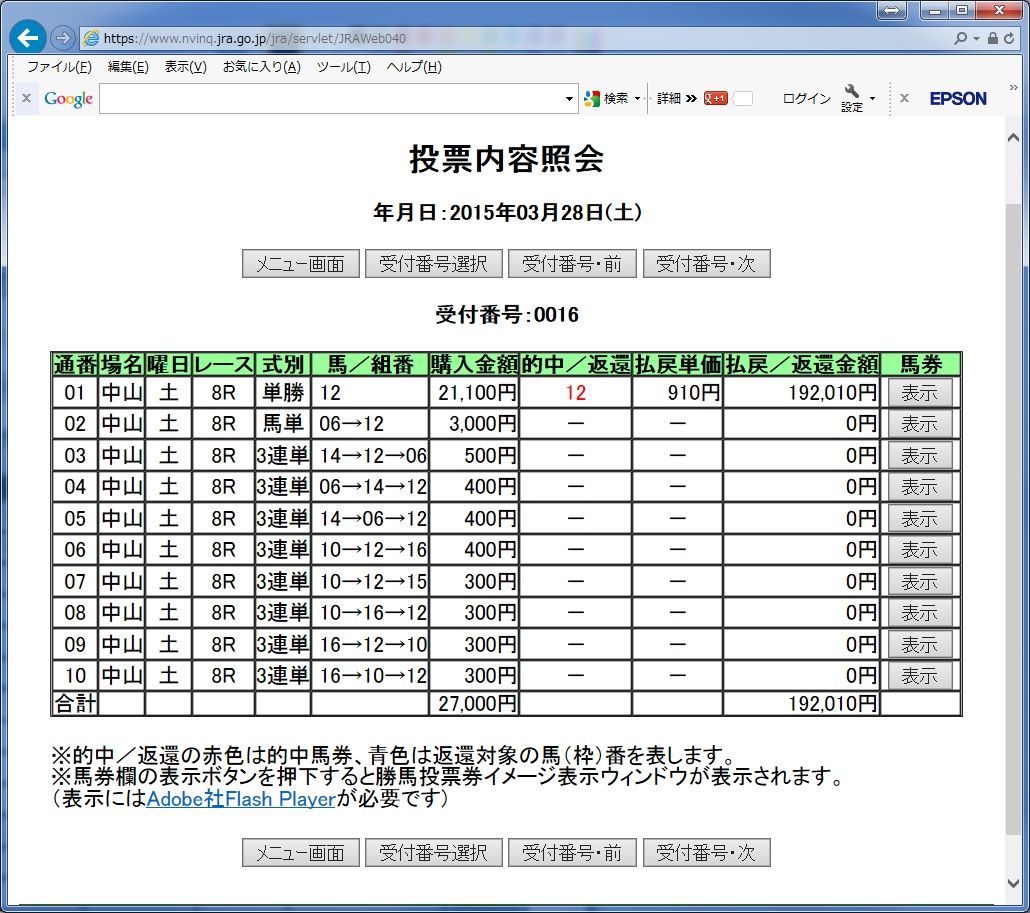 単勝27000円×4.8倍=12万96000円の払い戻し