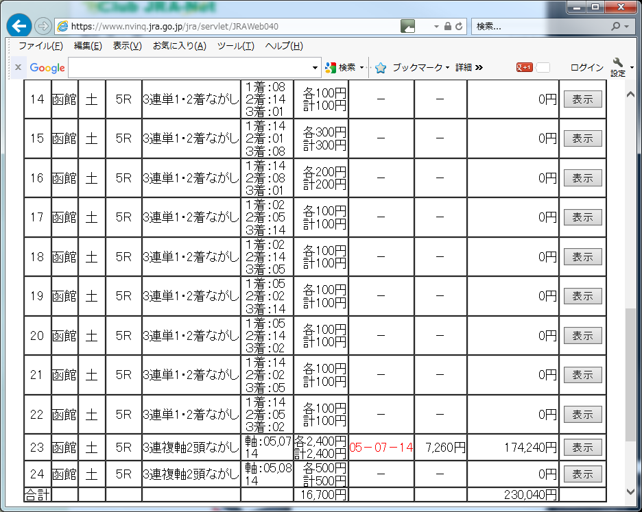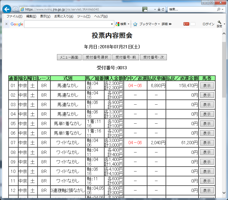 3連複5−8−10 2035.1倍×500円=101万7550円の払い戻し