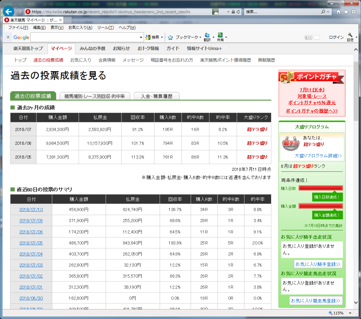 地方の馬券は買えたのですが(7、8日は会社のメール送信で固まってしない完全に買えず)、今月はまだマイナスです。今日はポイントガチャで+5%がでたので倍打ちで勝負してみようと考えています。ジャパンダートダービーは10%ポイント還元です!