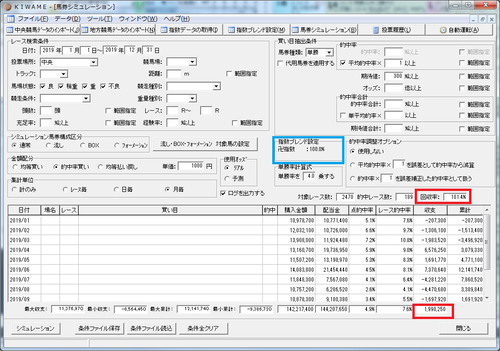 両指数とも100%を超えました。馬券種類、購入条件を絞るとさらに高いパフォーマンスが期待できそうです。