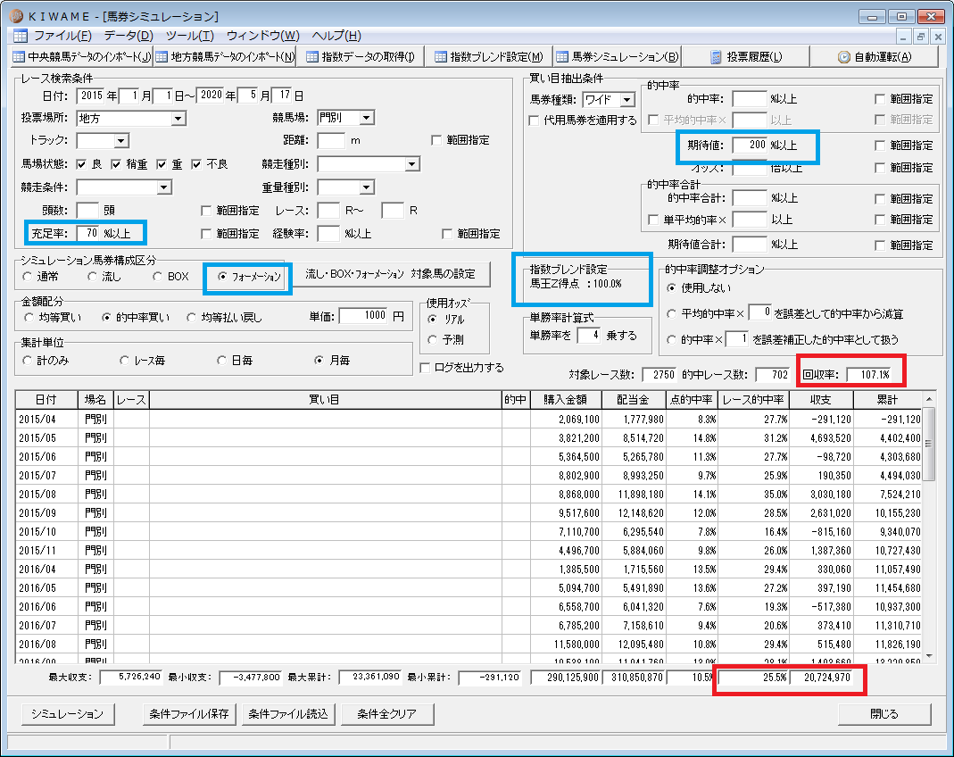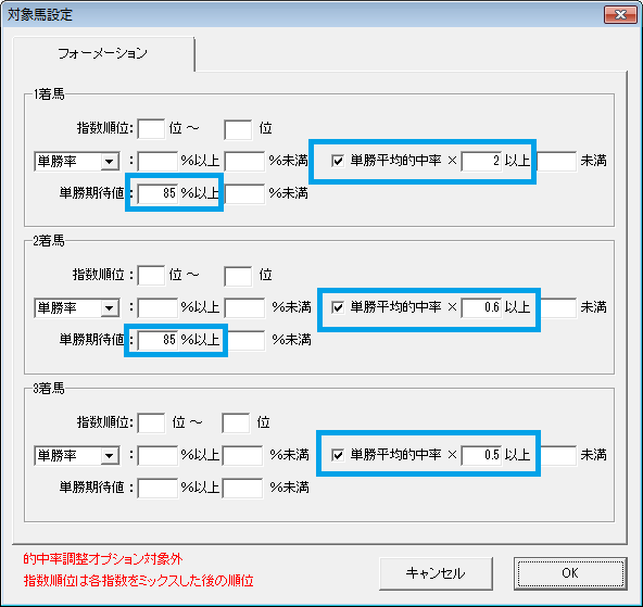 馬王Z得点100% フォーメーション、期待値200%以上、充足率70%以上
