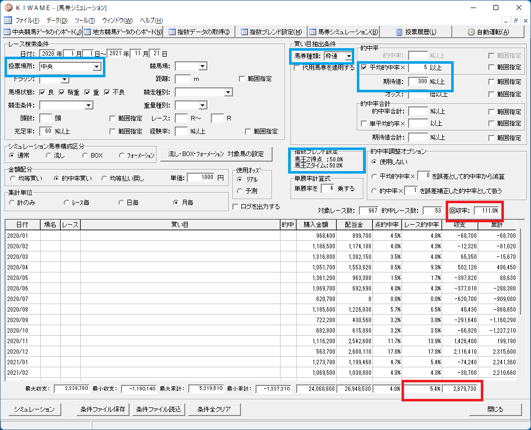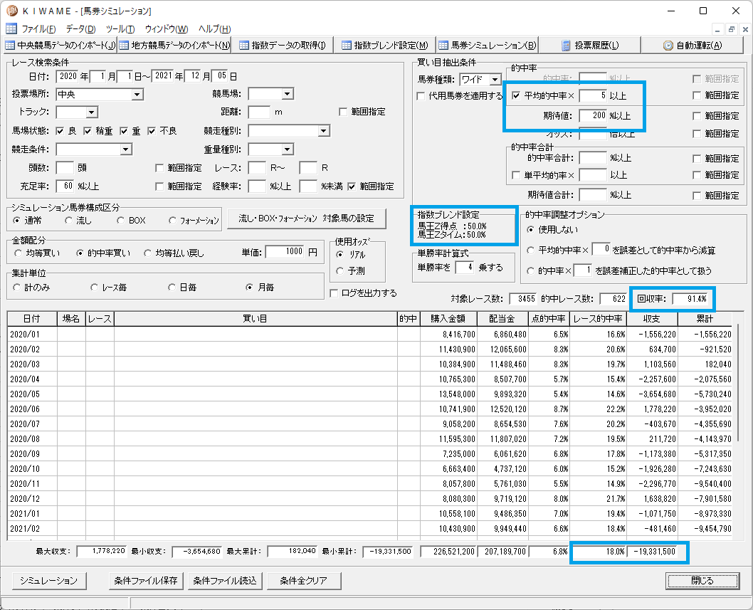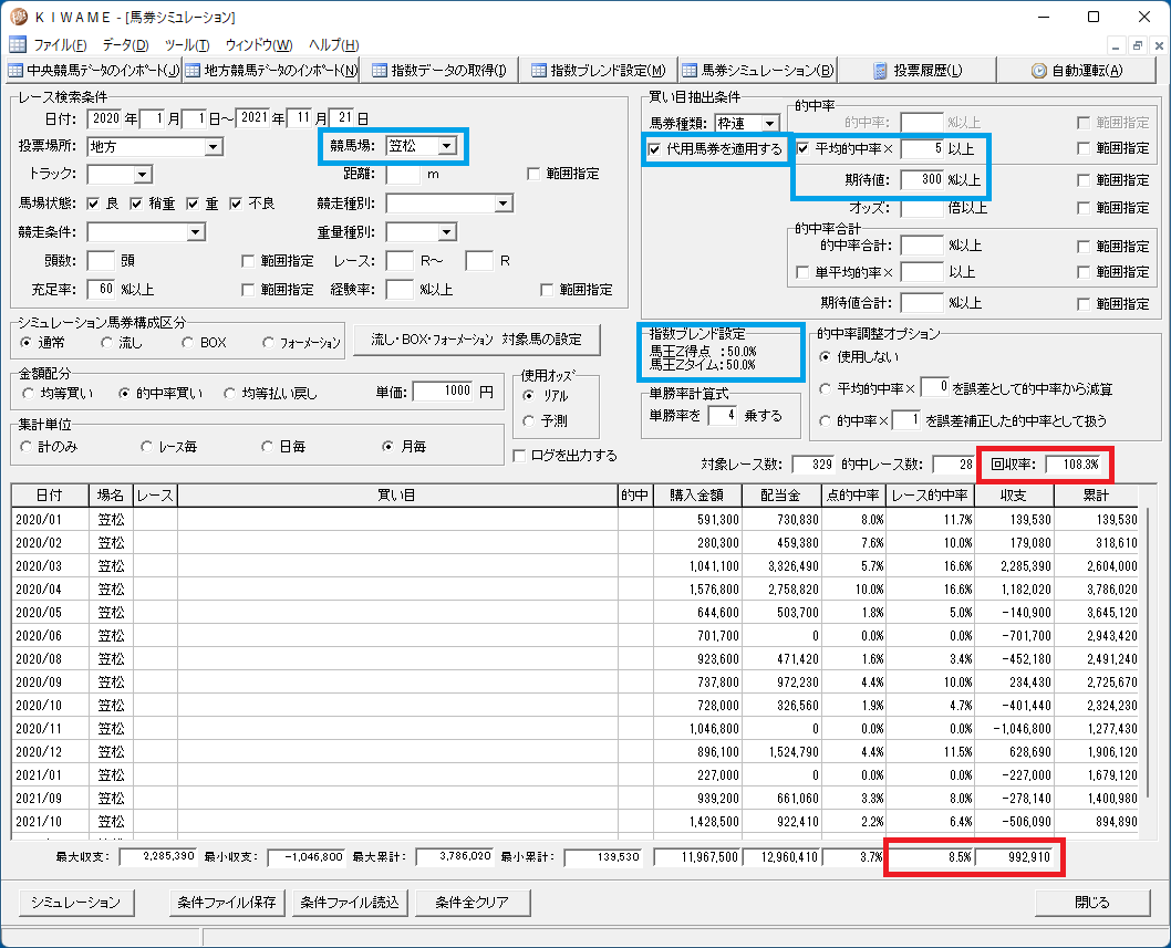 馬王には得点指数とタイム指数の2つがあるのですが、馬連を買う場合どちらが良いかを調べてみました。