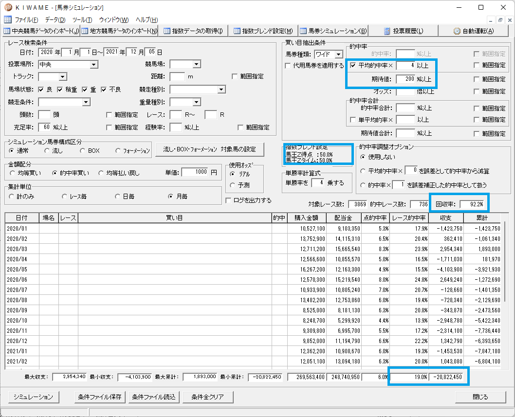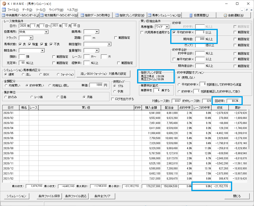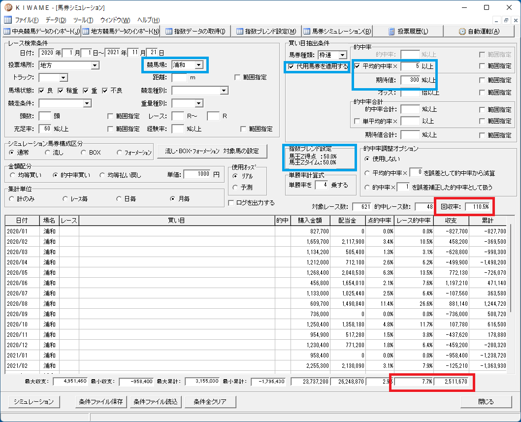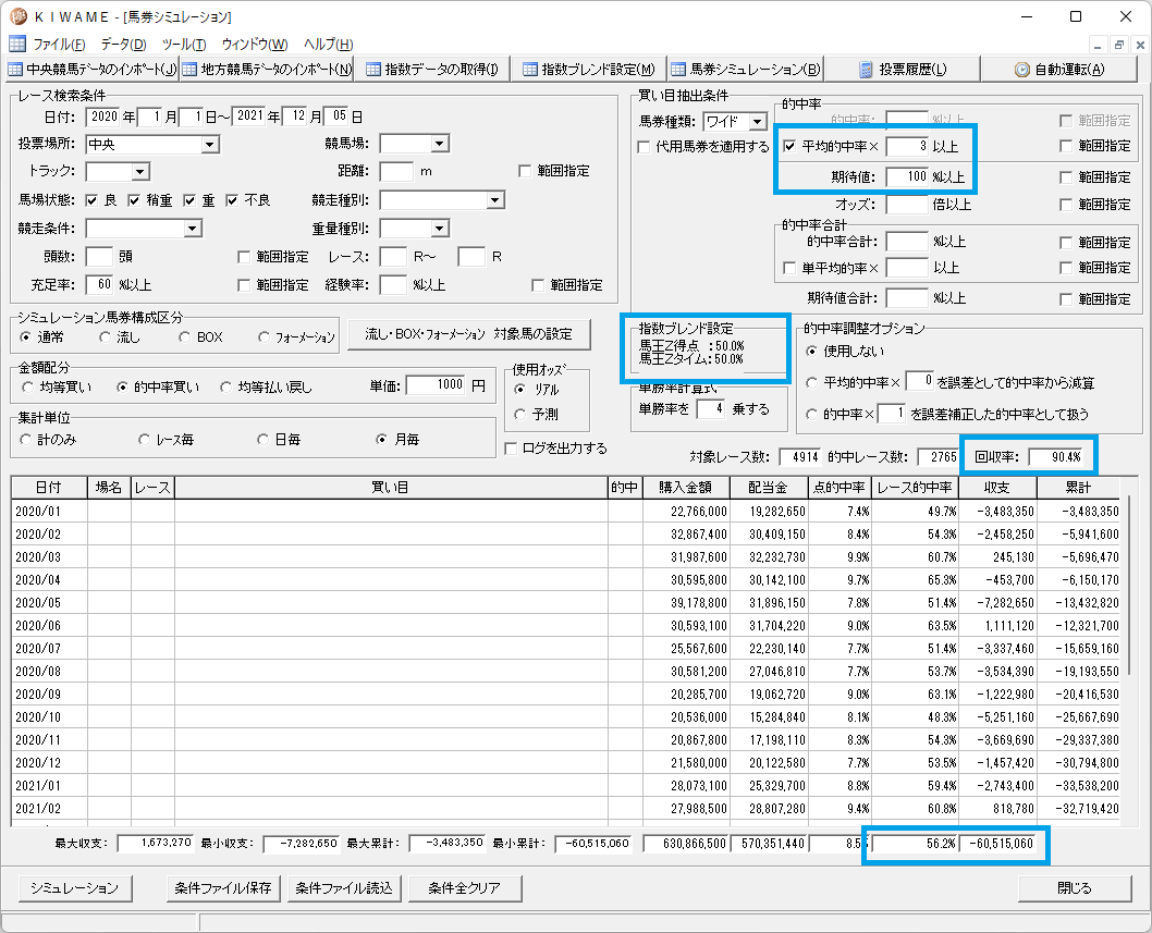馬王には得点指数とタイム指数の2つがあるのですが、馬連を買う場合どちらが良いかを調べてみました。