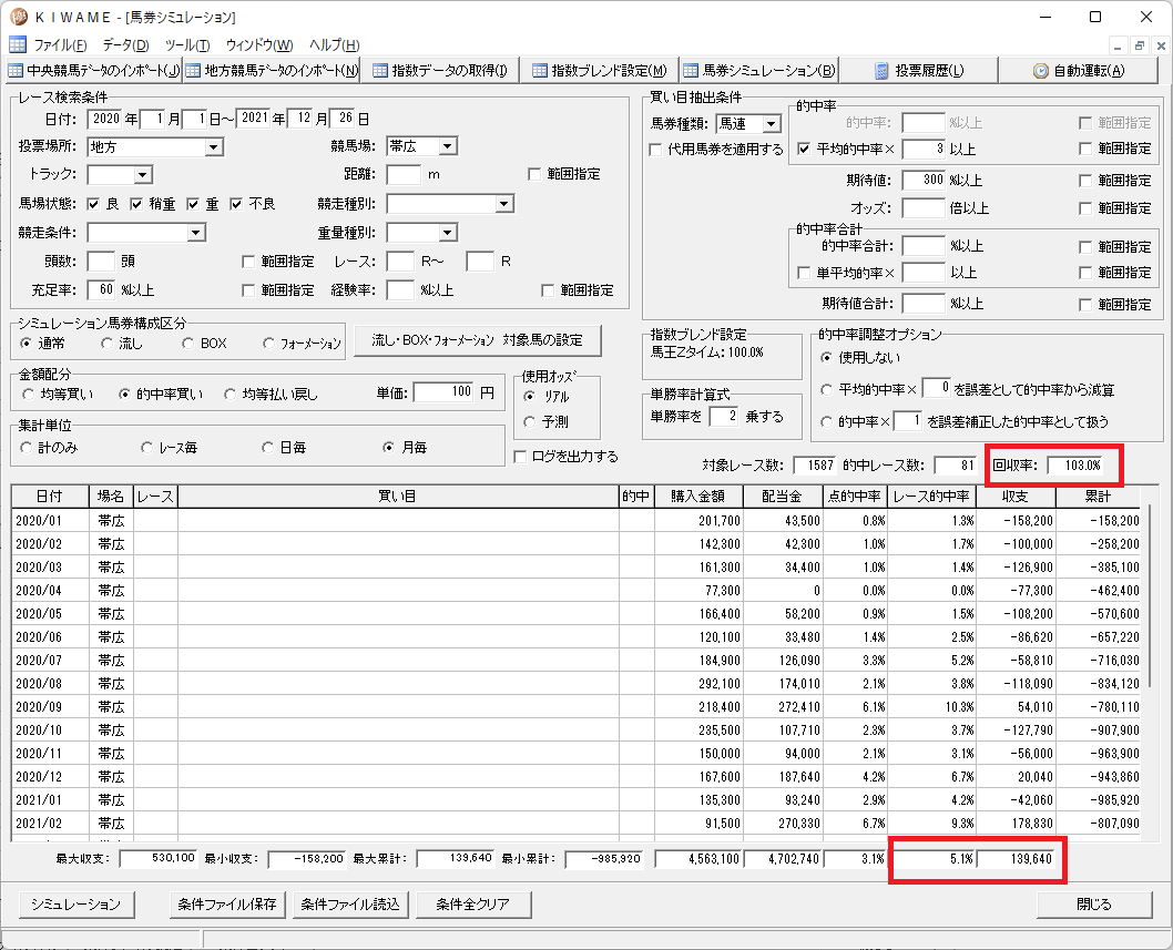 的中率5.1% 回収率103%