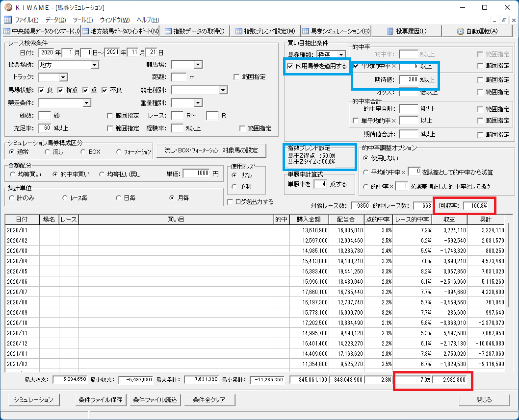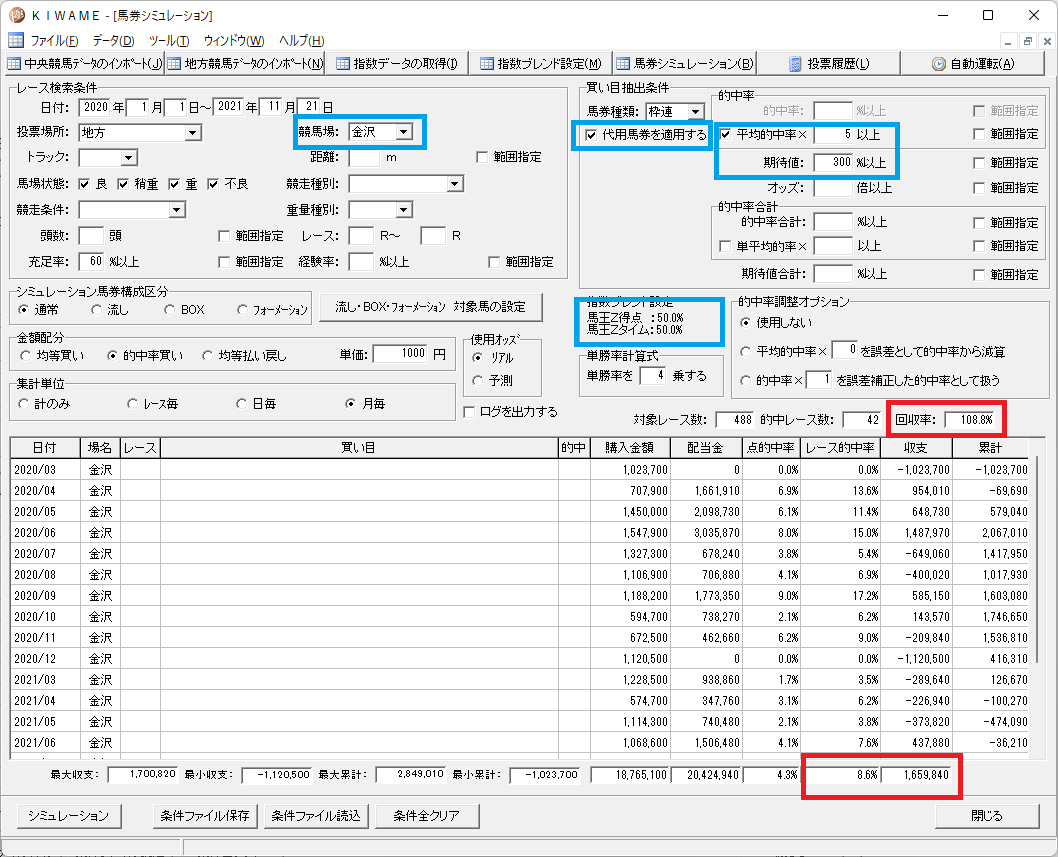 馬王得点100% 馬連 平均的中率✖3以上 期待値300%以上