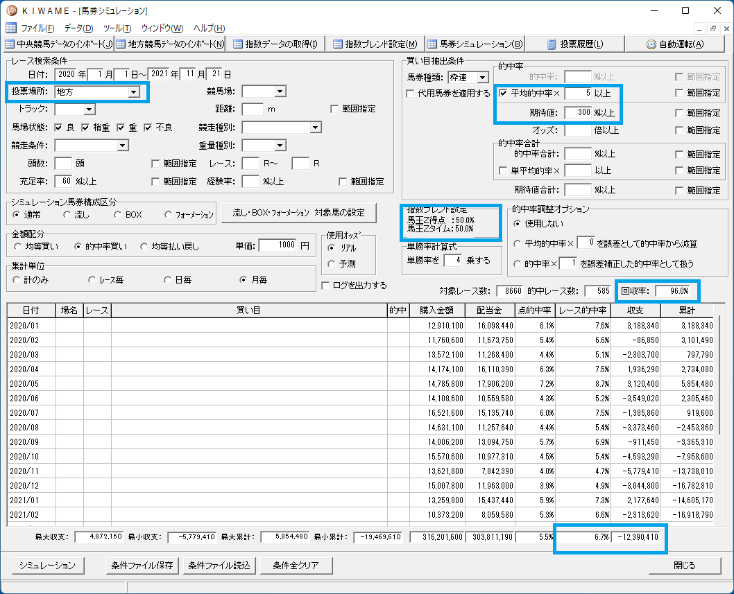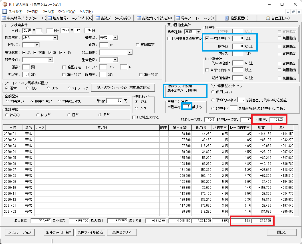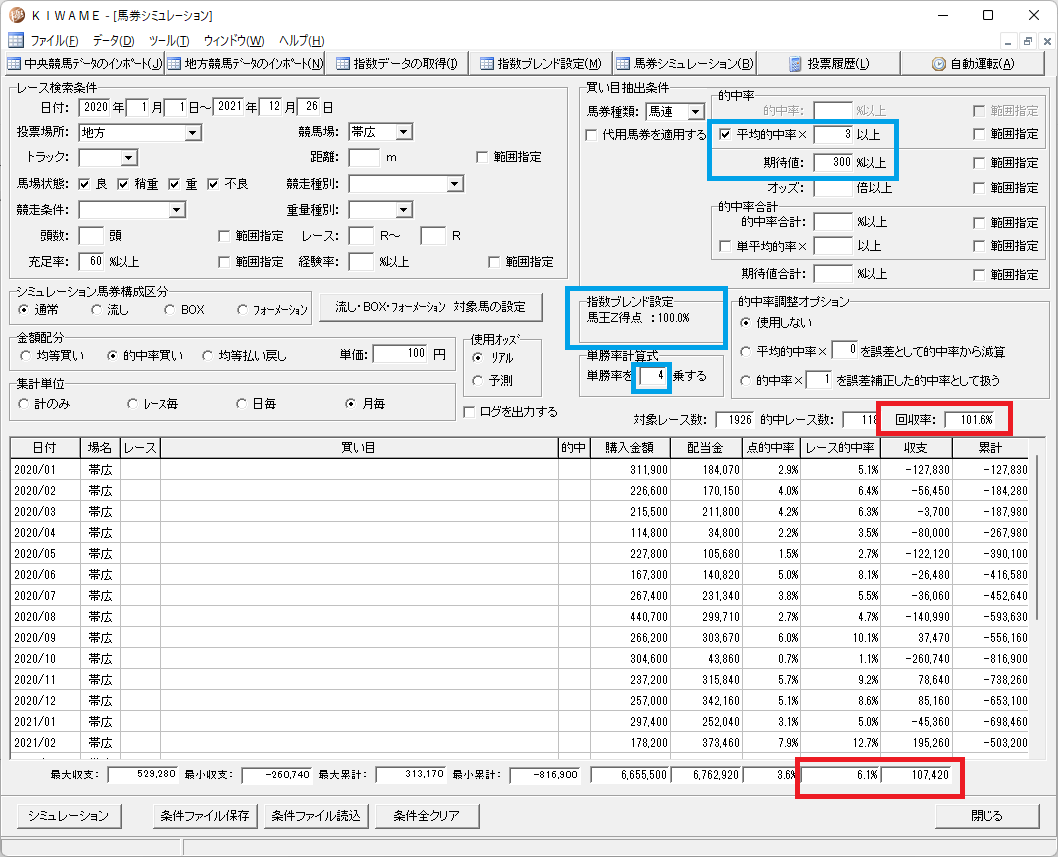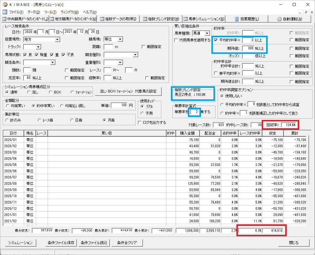 馬王得点の方が精度が高いようです。ばんえいは指数の形態が平地とは少し違うようで、単勝率計算 2乗が良いようです。