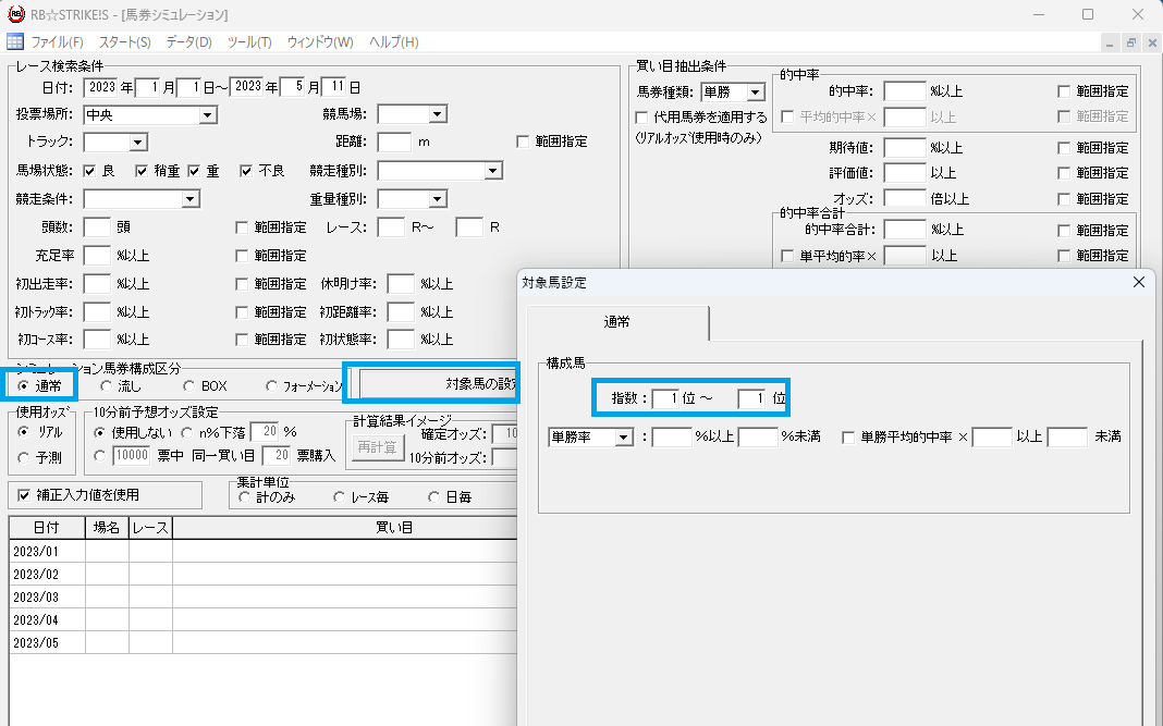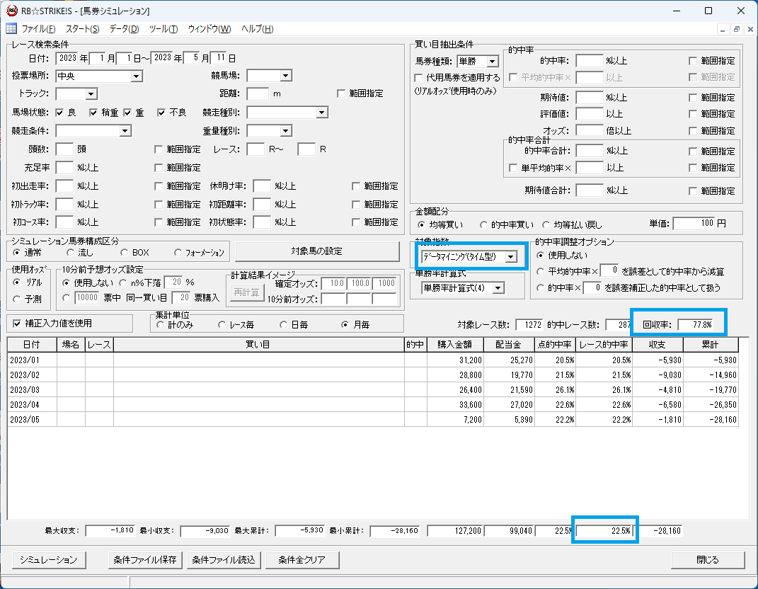 南関東のレースでRB☆STRIKE!2指数の1位馬の単勝を100円づつ買った場合