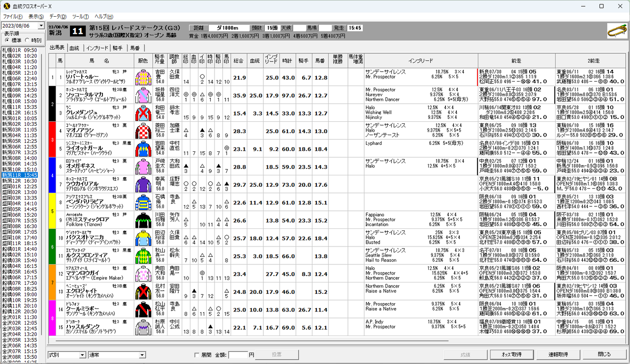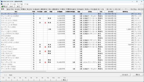 インブリード別に調べるには、「インブリード別(部分一致)」をクリックします。インブリード別で集計できるソフトはたぶんこのソフトしかありません。