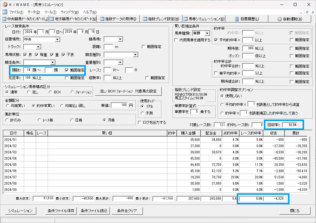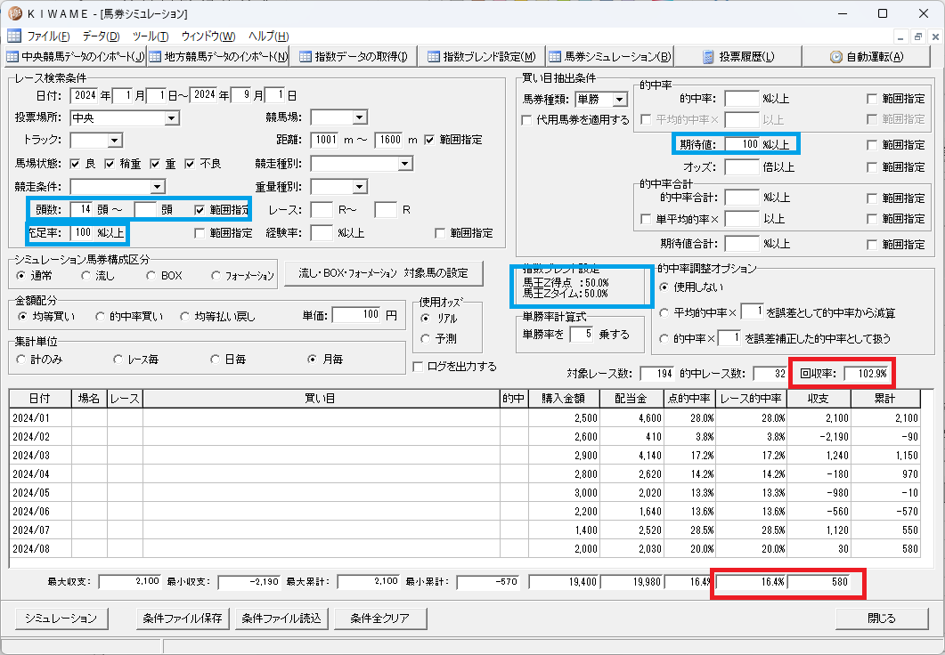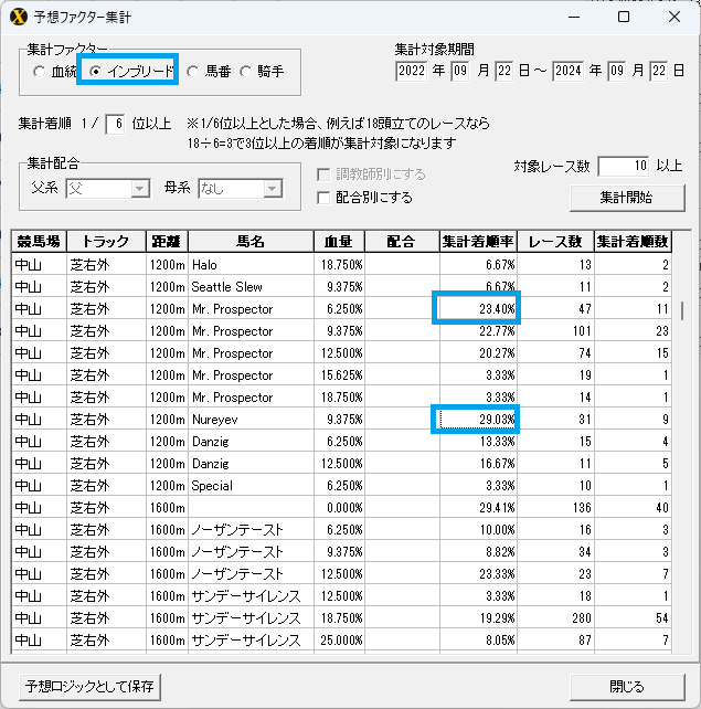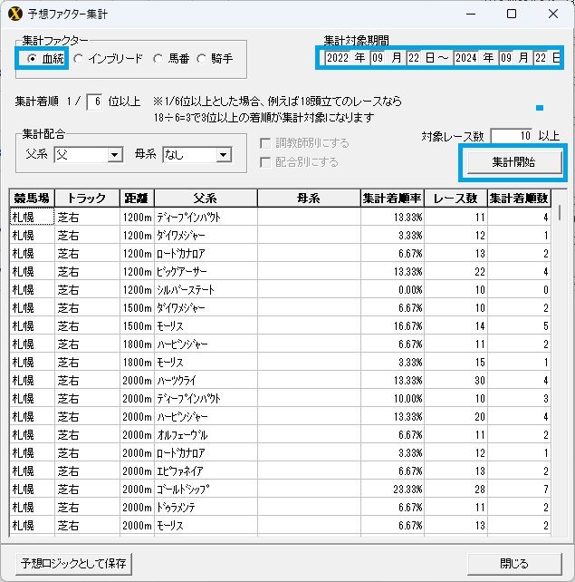 集計後は「予想ロジックとして保存」を押さないと保存されませんので注意して下さい。