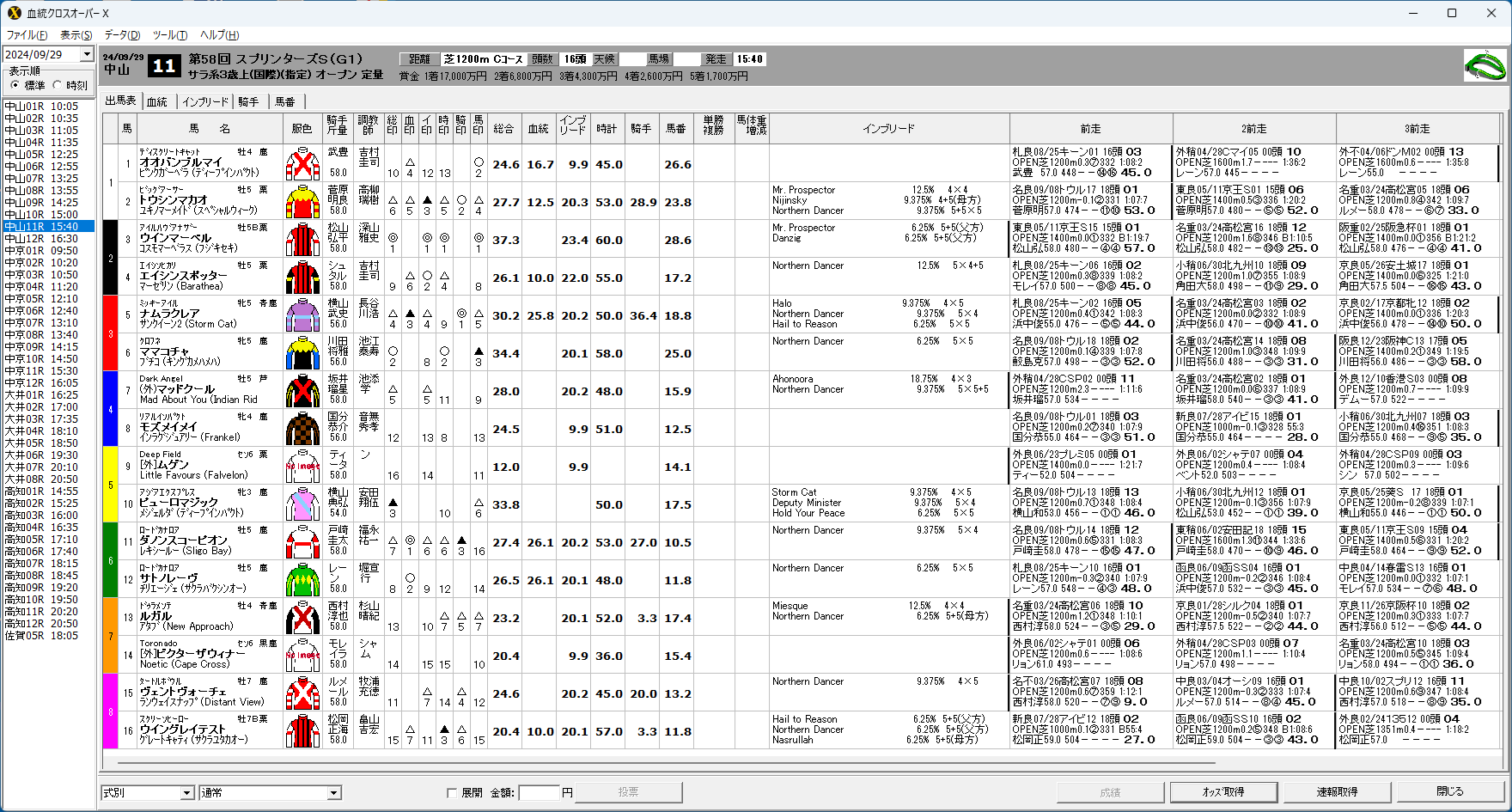 血統クロスオーバーXのスプリンターズステークス出馬表