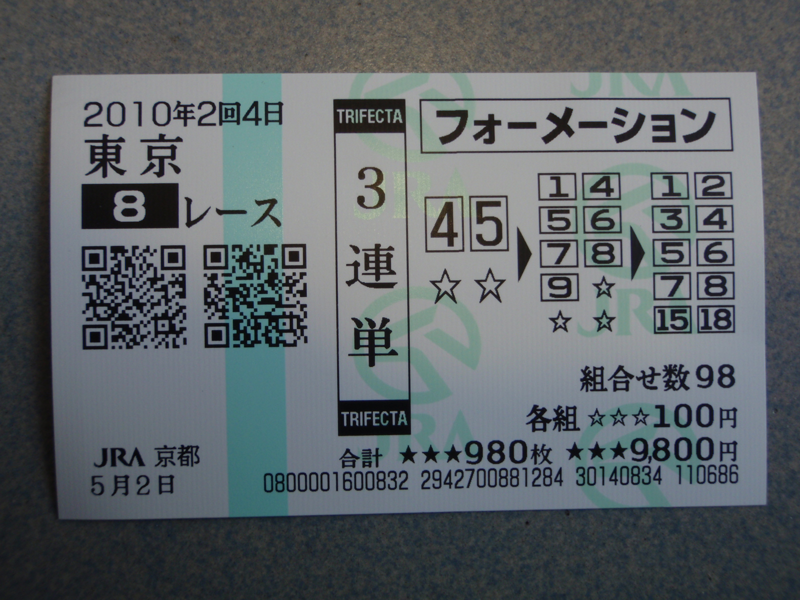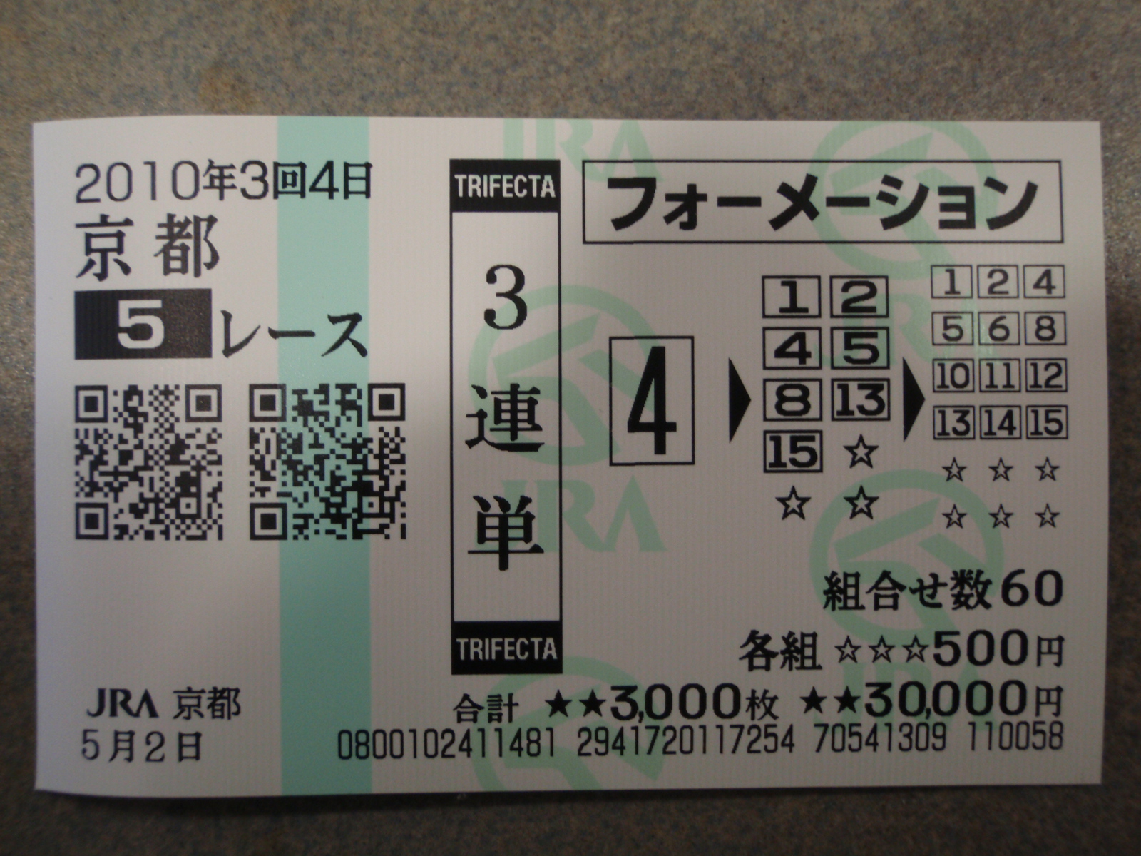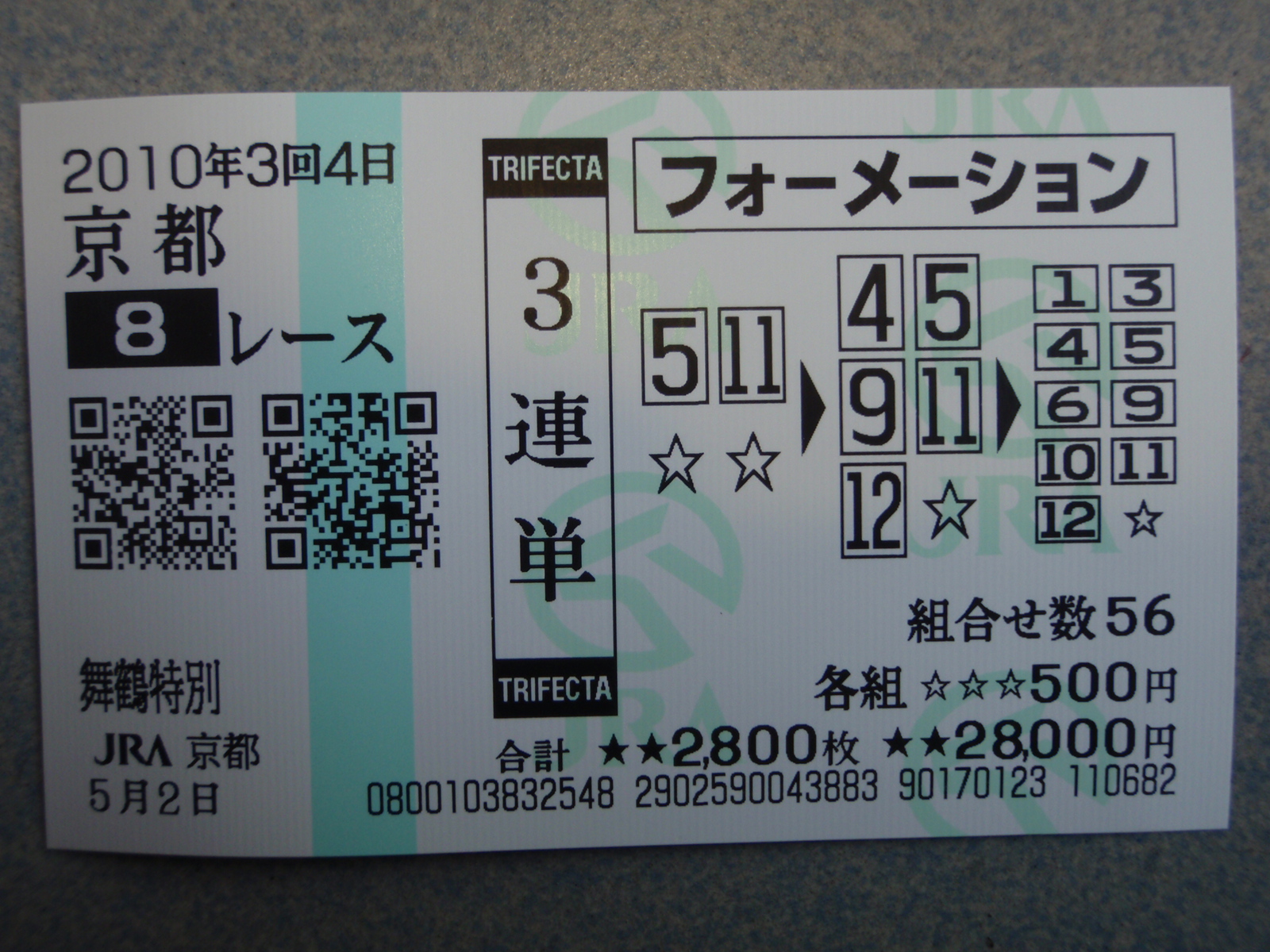 京都5R 4>2>6 500円×577.6倍=28万8800円