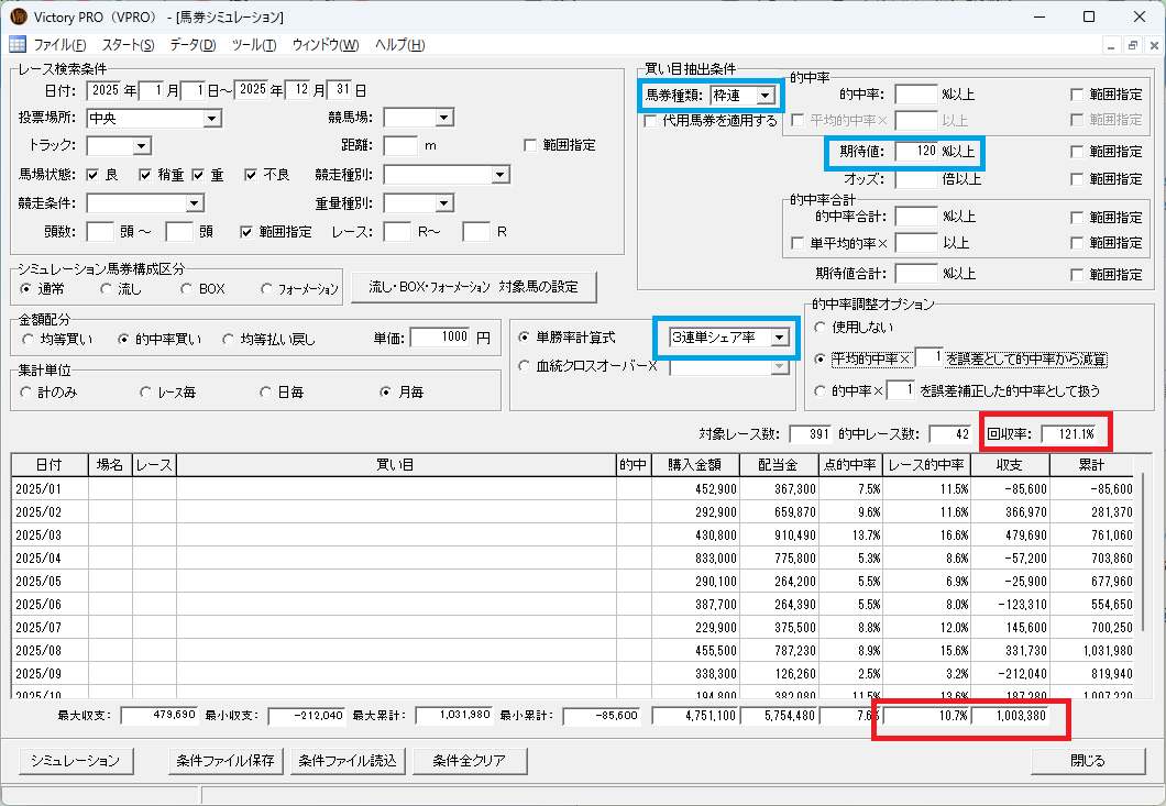 さらに条件を絞れば、まだまだ回収率が上がりそうです。
