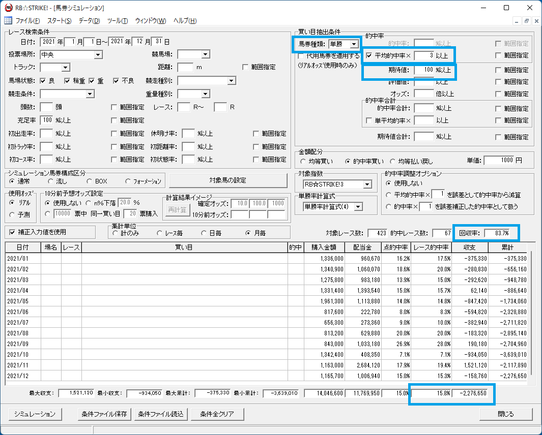 しかし馬場差を入力していないので単純にタイムの速さだけの指数になります。芝コースは開幕週やハイペースのレースの指数が高くなります。ダートコースはやや重のレースが高くなります。スローペースも考慮していませんので、指数が極端に低くなります。ばんえいは水分量が多い日の指数が高くなります。