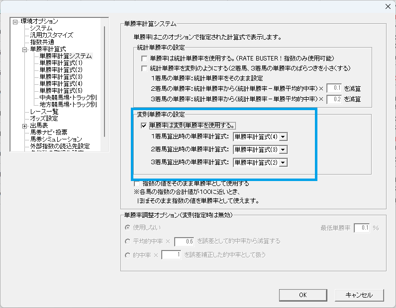 RB☆STRIKE!には1着馬、2着馬、3着馬を独立させて計算して確率を求めるオプションが実装されています。