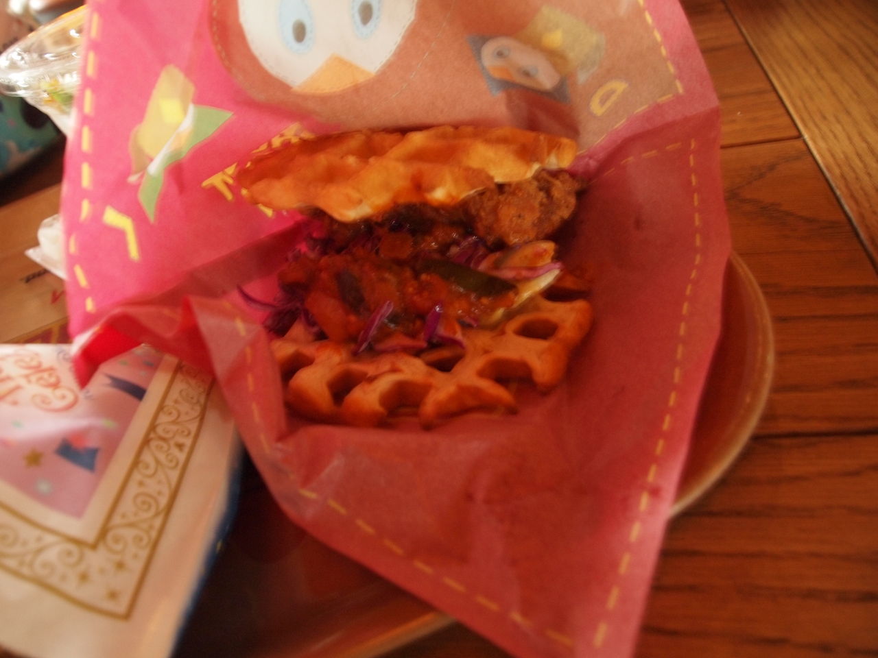 私は「ワッフルサンド(フライドチキン)」と「サラダ」