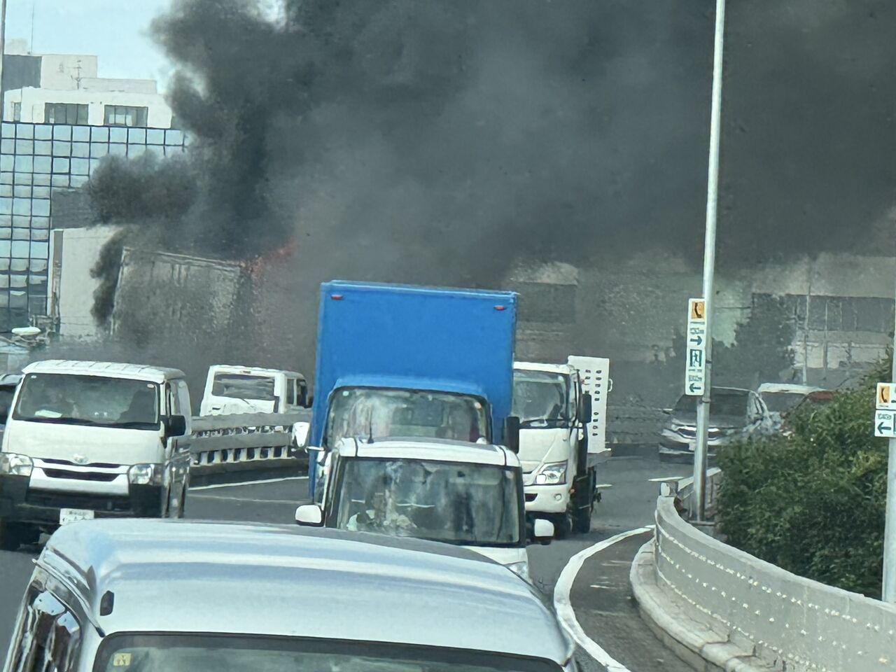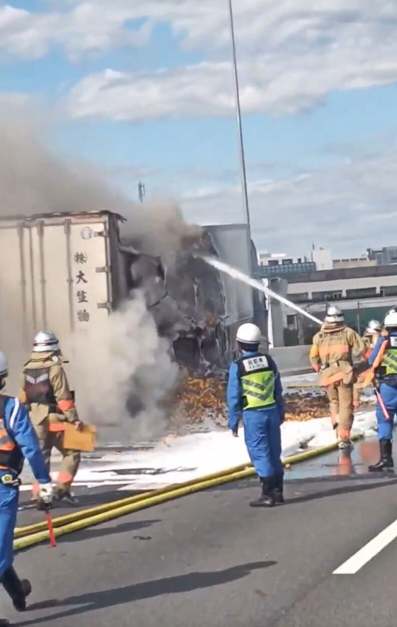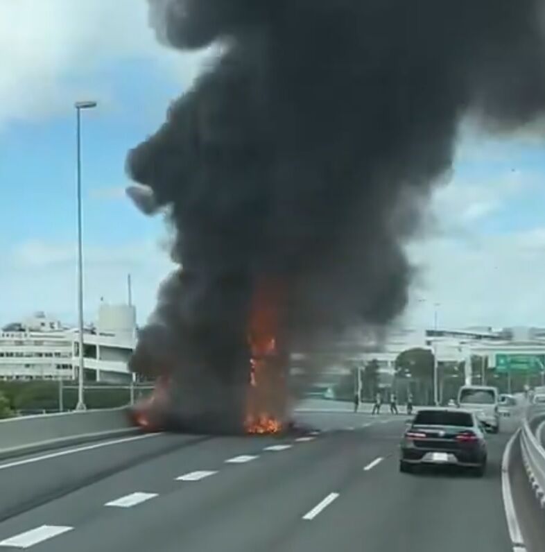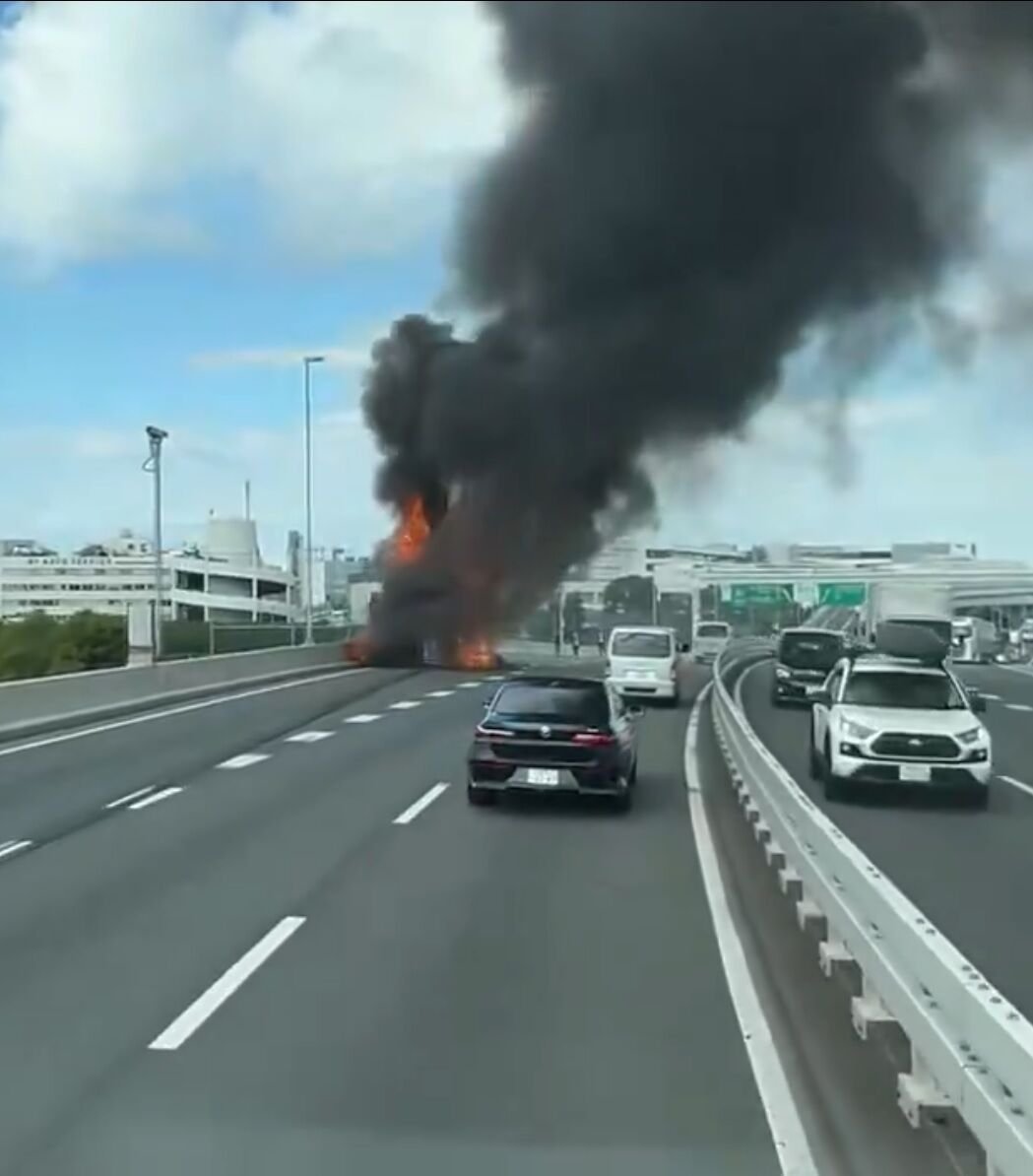 首都高1号羽田線で箱車が燃えてる! pic.twitter.com/vIgoBKVqMj
