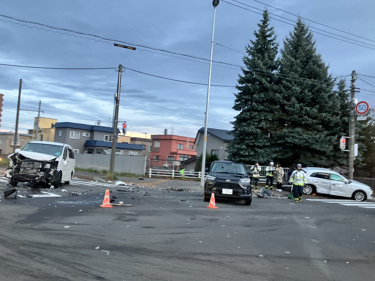 2025年11月9日 16時すぎごろ 北海道札幌市北区新川3条14丁目付近で事故が発生している目撃情報が寄せられた。