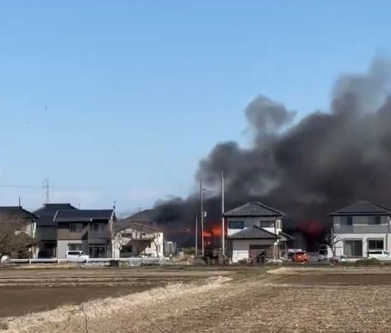 【火事情報】茨城県常総市豊岡町丙付近 建物から炎と黒煙あがる火災3月8日 #茨城 #常総 #火災