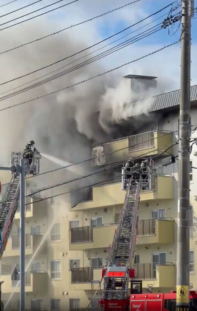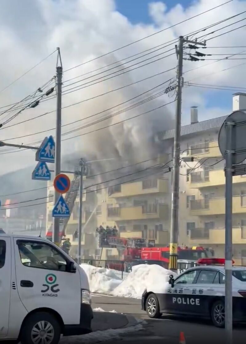 【火事情報】北海道札幌市南区真駒内曙町1丁目 あけぼの団地付近 建物から炎と黒煙あがる火災3月11日 #北海道 #札幌 #真駒内 #火災
