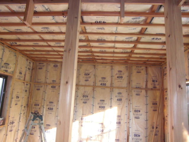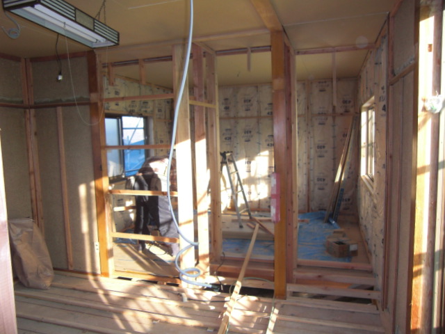 造作の大工工事がほぼ終了して、設備工事、ユニットバス工事、塗装工事に入っております。