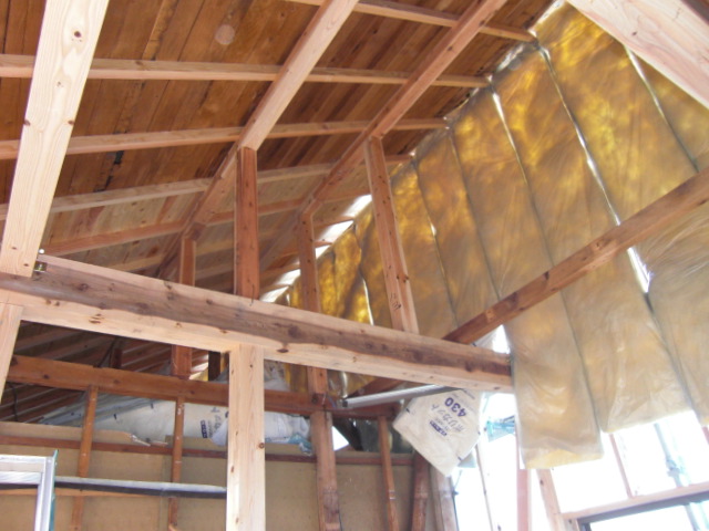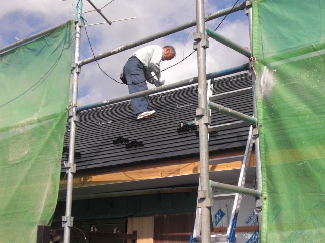 増築棟上げ・屋根組を終えて、連休中に屋根葺きをいたしました。