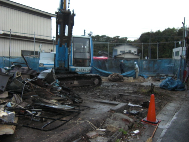 樹木の伐採・伐根とコンクリート壁のカッター工事が終わり、いよいよ本体工事に入りました。