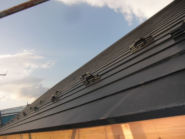 屋根を5.5寸勾配に全面組直してからガルバニウム鋼板横葺いたしました。