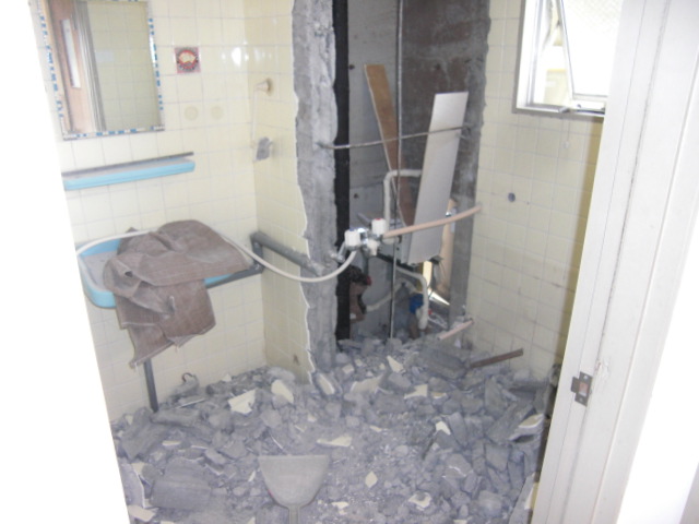 浴室の手摺が下地の強度不足ですので、パネルを外しての補強工事になりましたので、ちょっと工期が開いてしましました。