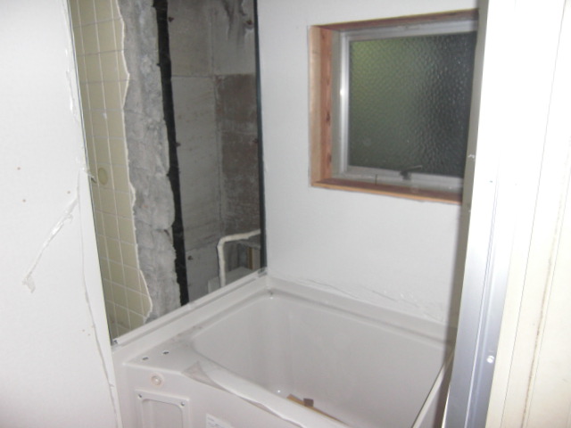 壁のハツリでのスペース確保と浴室窓枠も特注で製作いたしました。