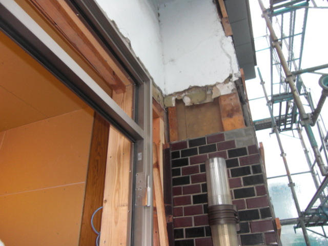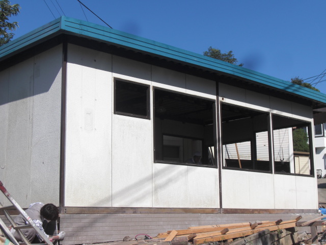 外壁のトタンを解体してから、サッシ枠を交換して2階から改造していきます。