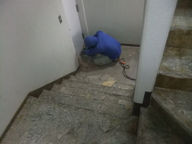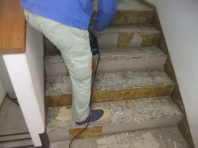 既設Pタイルとステップ・巾木の解体・撤去工事です。