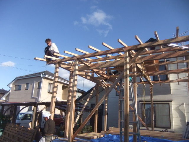 気持ち良く骨組み工事が進んで形が見えてきました。