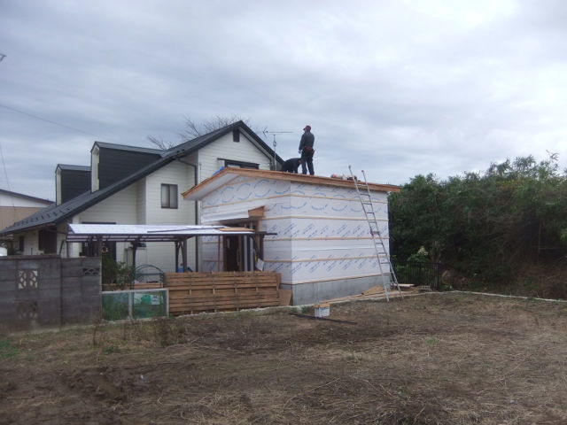 午後からは雨の予報ですので、ブルーシートの養生で明日から建て方工事となります。