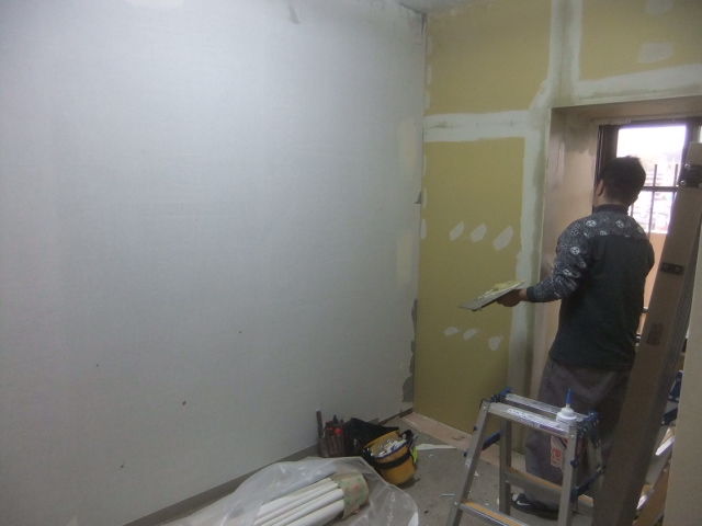石膏ボードを貼ってから防カビ剤のノリで内装リフォームです。