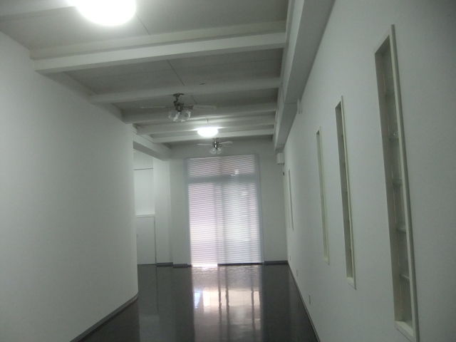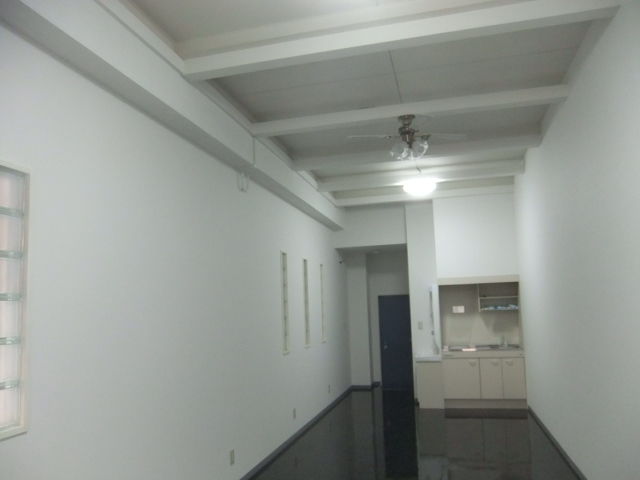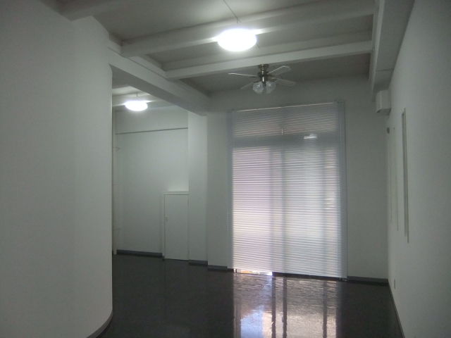 クロス貼り、床のフロアータイル・ソフト巾木貼り、既存梁塗装、電気工事(照明・スイッチ・コンセント)で大型ブラインドと電気引き込み分電盤繋ぎ工事で、全てが完成いたしました。