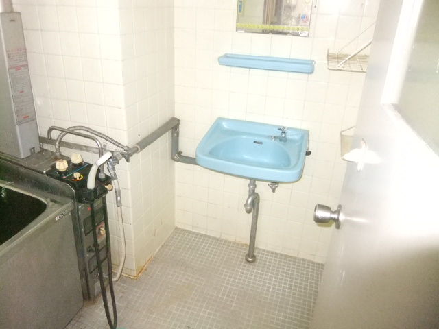 既存タイル貼りのバランス釜の浴室を手洗い付きユニットバスにリフォームです。