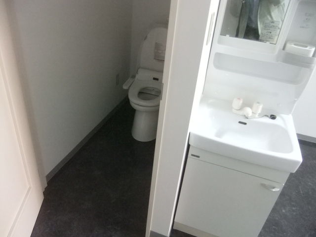 トイレ、ミニキッチン、洗面化粧台、ロスナイ換気扇を設置です。