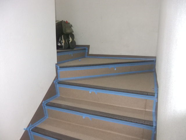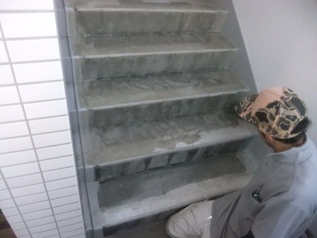 既存階段の不離を下地剤で補修して、専用ボンドを充分に塗布いたします。