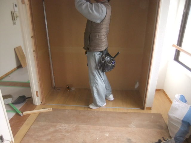 押し入れのクローゼット工事とシステムキッチンでのアイカセラールのキッチンパネル貼り工事です。