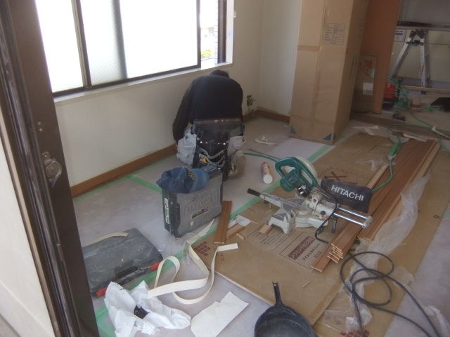 巾木設置リフォーム中