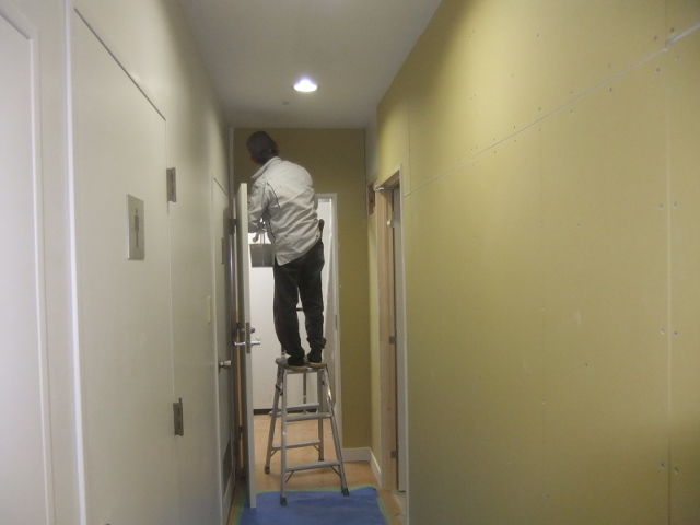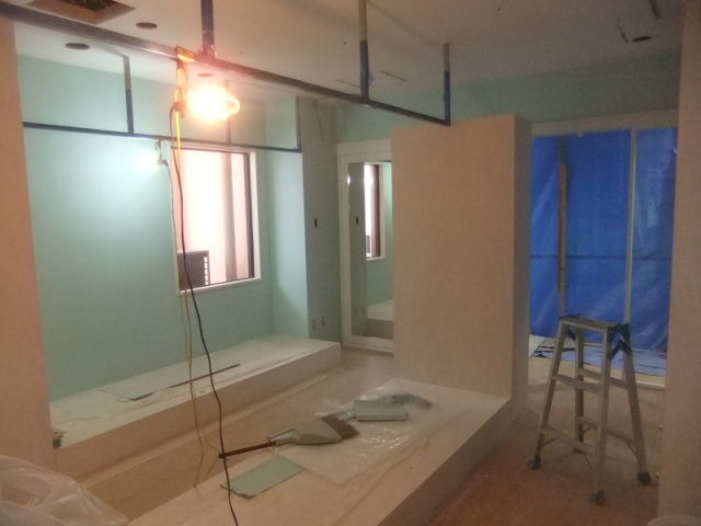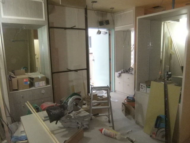 昨日は、大工職人、建具職人、大型ガラス・鏡設置職人で職人8人が入り乱れておりました。