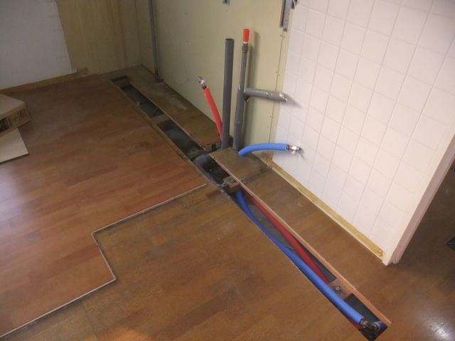 水廻りもリフォーム(ユニットバス、トイレ、システムキッチン)ですが、赤錆が出る給水・給湯配管を鉄管から架橋ポリエチレン管に入れ替えてフルオートの給湯器に交換です。